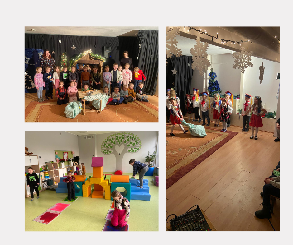 Dzieci z grupy Motylki odwiedziły Przedszkole–Żłobek Alfik, gdzie miały okazję obejrzeć wyjątkowe, świąteczne przedstawienie przygotowane przez dzieci z grupy Sówki pt. „Jasełka na ludowo”. Było bardzo radośnie i kolorowo!