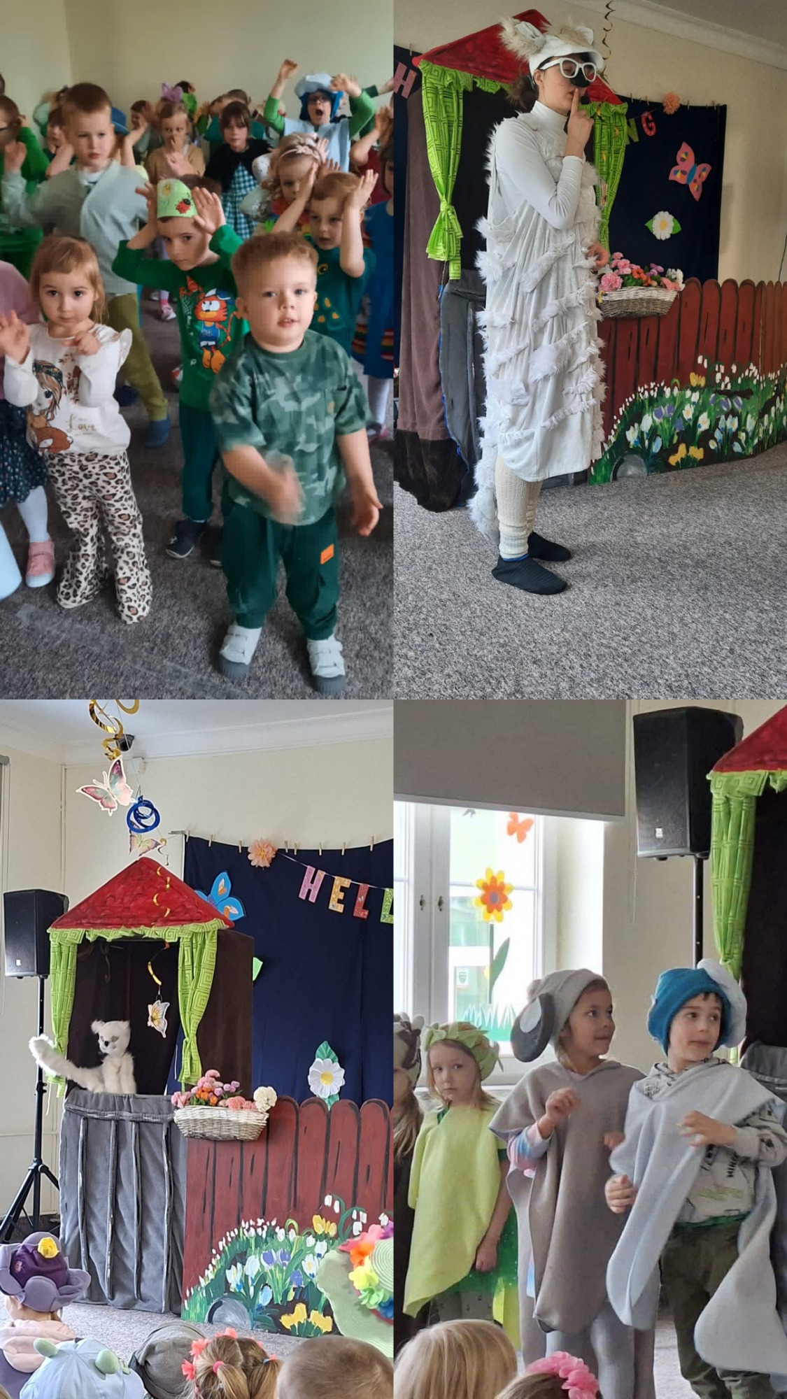 Po powrocie do przedszkola czekała na nas kolejna atrakcja – teatrzyk „Kocia wiosna”, który wprowadził wszystkich w jeszcze bardziej wiosenny nastrój.