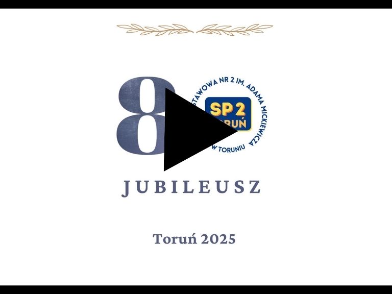 Dnia 30 stycznia 2026 r. w naszej szkole odbyły się uroczyste obchody Jubileuszu 80-lecia. Uroczystość uświetnili swoją obecnością przedstawiciele władz miasta, Pan Paweł Gulewski – Prezydent Miasta Torunia, Pani Dagmara Zielińska – Zastępca Prezydenta, a także Pani Beata Sikorska – Kujawsko – Pomorska Wicekurator. Zaproszenie na obchody przyjęli także: Pani Iwona Muszyńska – Dyrektor Wydziału Edukacji UMT wraz z pracownikami oraz Dyrektor Wydziału Katechetycznego – Ks. Mariusz Wojnowski. W Jubileuszu wzięli również udział przedstawiciele oświatowych organizacji związkowych. Nie zabrakło także członków Rady Rodziców naszej szkoły, na czele z jej przewodniczącą, Panią Karoliną Czachorowską. Z radością gościliśmy również byłych dyrektorów, emerytowanych pracowników, absolwentów, przyjaciół i sympatyków naszej szkoły. Na uroczystościach nie mogło oczywiście zabraknąć uczniów i pracowników, którzy nie tylko zasiedli na widowni, ale na długo przed rozpoczęciem obchodów, z zaangażowaniem je przygotowywali. W rolę konferansjerów wcielili się: Pani Julita Peplińska oraz uczeń klasy 6c – Aleks Radoszewski. Uczniowie z Koła teatralnego działającego pod kierunkiem Pani Małgorzaty Orlikowskiej i Pani Iwony Pietruskiej zaprezentowali piękny program artystyczny pt. „Ocalić od zapomnienia”. Był on połączeniem teraźniejszości z historią i początkami naszej szkoły, powagi doniosłego Jubileuszu z humorem codzienności. Wspaniałą grę aktorską naszych uczniów, radosne tańce i popisy wokalne przeplatały wzruszające obrazy z początków i kolejnych dekad istnienia Dwójki. O oprawę multimedialną programu zadbała Pani Jolanta Drzycimska – Kola. Z ekranu do zebranych „przemówił” sam Patron – Adam Mickiewicz… Tę niezwykłą lekcję historii uzupełniły ciekawe wywiady, w tym rozmowa z długoletnią Dyrektorką szkoły, Panią Danutą Rasmus, która opowiedziała o budowie i otwarciu nowego budynku placówki w 2001 r. Podczas uroczystości wystąpił również chór szkolny przygotowany przez Pana Lesława Gołębiowskiego. W tym dniu nie zabrakło serdecznych gratulacji, ciepłych słów i pięknych życzeń dla naszej Jubilatki oraz całej społeczności szkolnej. Obchody zakończyło uroczyste odsłonięcie Tablicy pamiątkowej w holu szkoły, zwiedzanie wystaw i prezentacji z życia dawnej i współczesnej szkoły. Goście dokonali także wpisów do Księgi pamiątkowej. Wszystkim serdecznie dziękujemy. Kolejne takie święto już za 10 lat…!