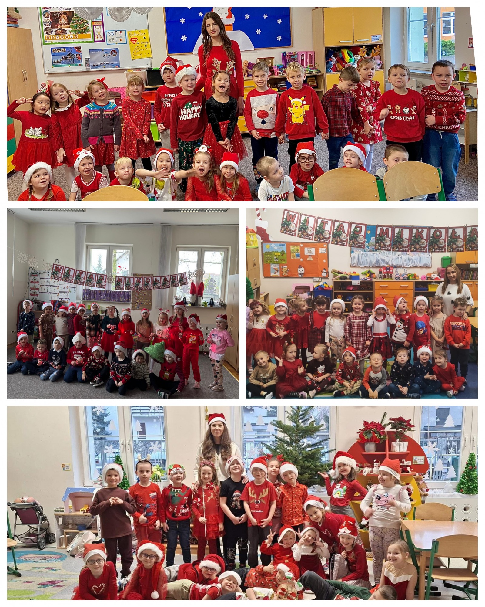 5 grudnia w przedszkolu obchodziliśmy Mikołajki. Dzieci z wielką radością odkryły, że w sali czekają na nie upominki pozostawione przez Świętego Mikołaja. Tego dnia przedszkolaki brały udział w świątecznych zabawach i zajęciach plastycznych, a cała atmosfera była pełna uśmiechu i mikołajkowej magii.